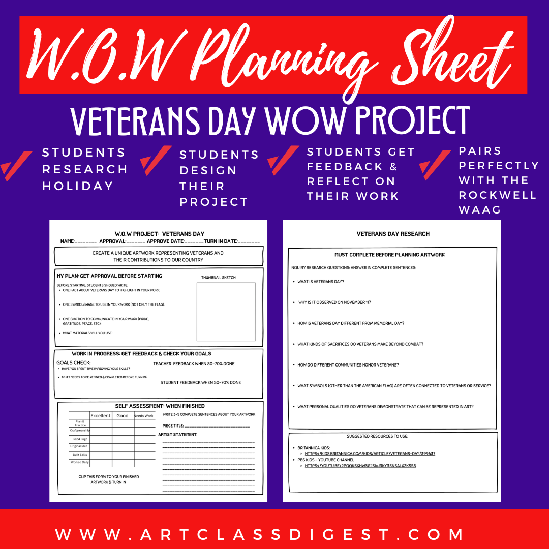 Honor through art with this week’s Veterans Day WOW Planning Sheet—a free resource that helps students explore gratitude, courage, and community through creative expression.